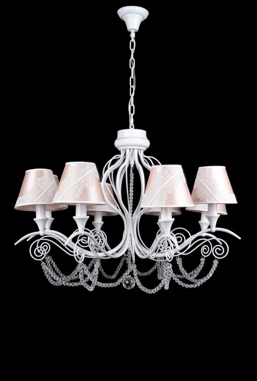 Стиль: Люстри-свічкиВисота, см: 70-100Диаметр, см: 80Кількість ламп: 8Максимальна потужність на один патрон, Вт:40 Напруга, В:220Парон:E14Цвет:белий, коричневий Maтеріал: метал, хрусталь, тканинаЛюстра підходить для натяжних стельветів універсальний і можна встановити в спальні, залі, коридорі, кухні та в дитячій кімнаті. Тип кріплення: на гачок